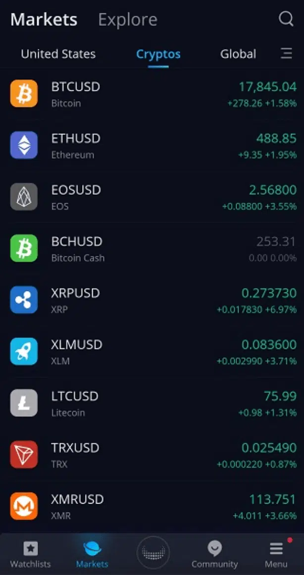 WeBull offers over 20 digital currencies to trade, including some niche ones such as Cosmos, Fantom, and Decentraland. The great thing is that WeBull doesn’t charge any commissions when you trade cryptocurrencies and instead charges a 100-basis point spread on either side of the transaction. This equates to a 1% fee when buying and selling an asset.